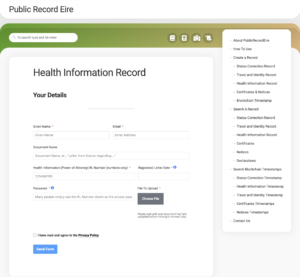 If you need to provide access to these documents, ie., a doctor or law enforcement officer, scan the QR code on the back of your card. This will bring you to PublicRecordEire.